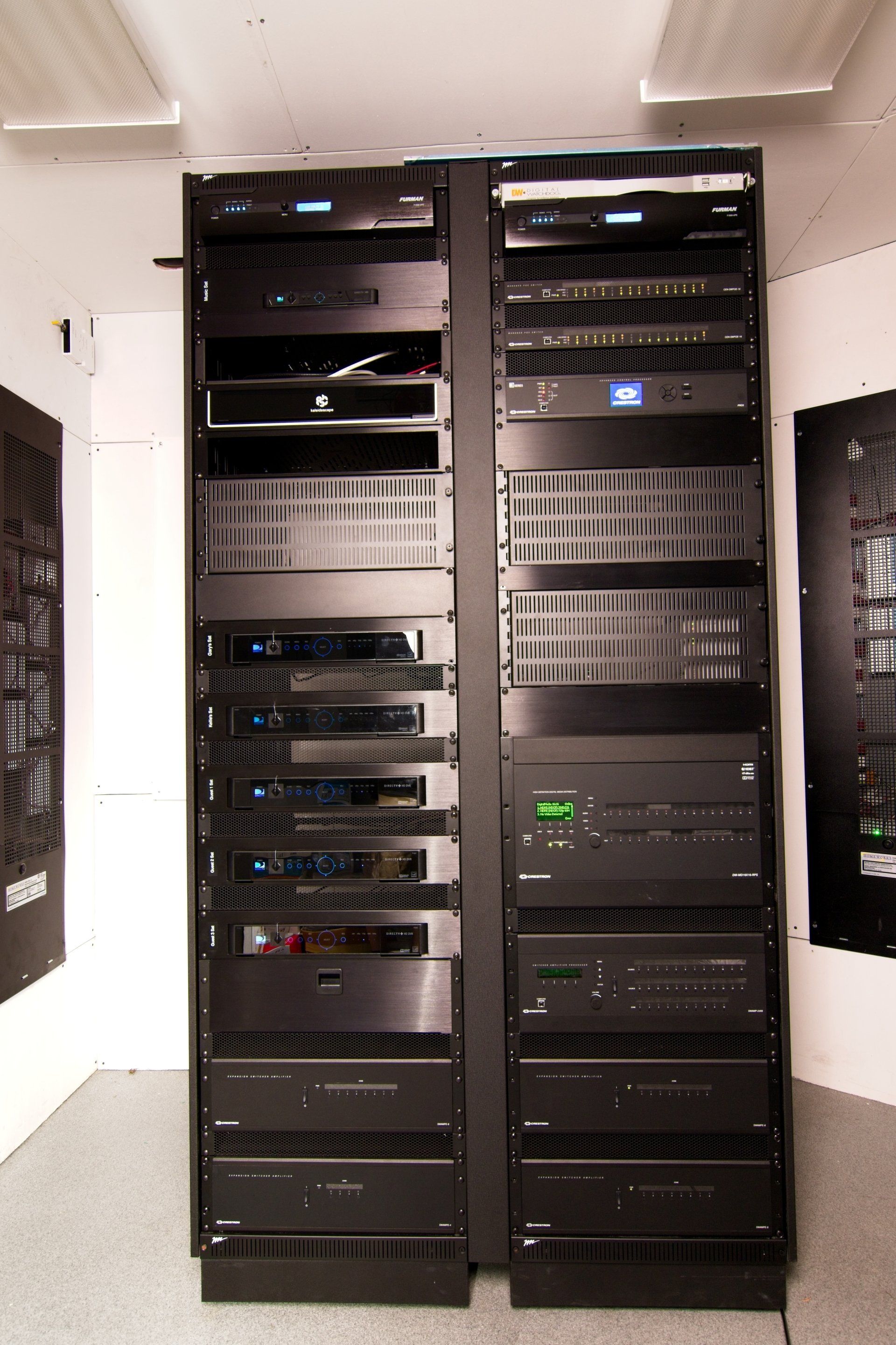 This is a very large home with 2 theaters, intercom system, whole house music, CC TV’s, 6 Receivers, Pop up Televisions, a Lutron Lighting System, and a full high power network controlled by RTI.