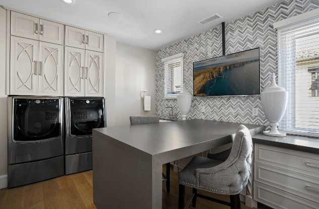 The Great Room is featured with an 4K UHD 98” (yes that’s just over 8’) Planar television. All of the Paradigm speakers and Paradigm Subwoofer are hidden, including the Equipment Rack tucked away in a closet.